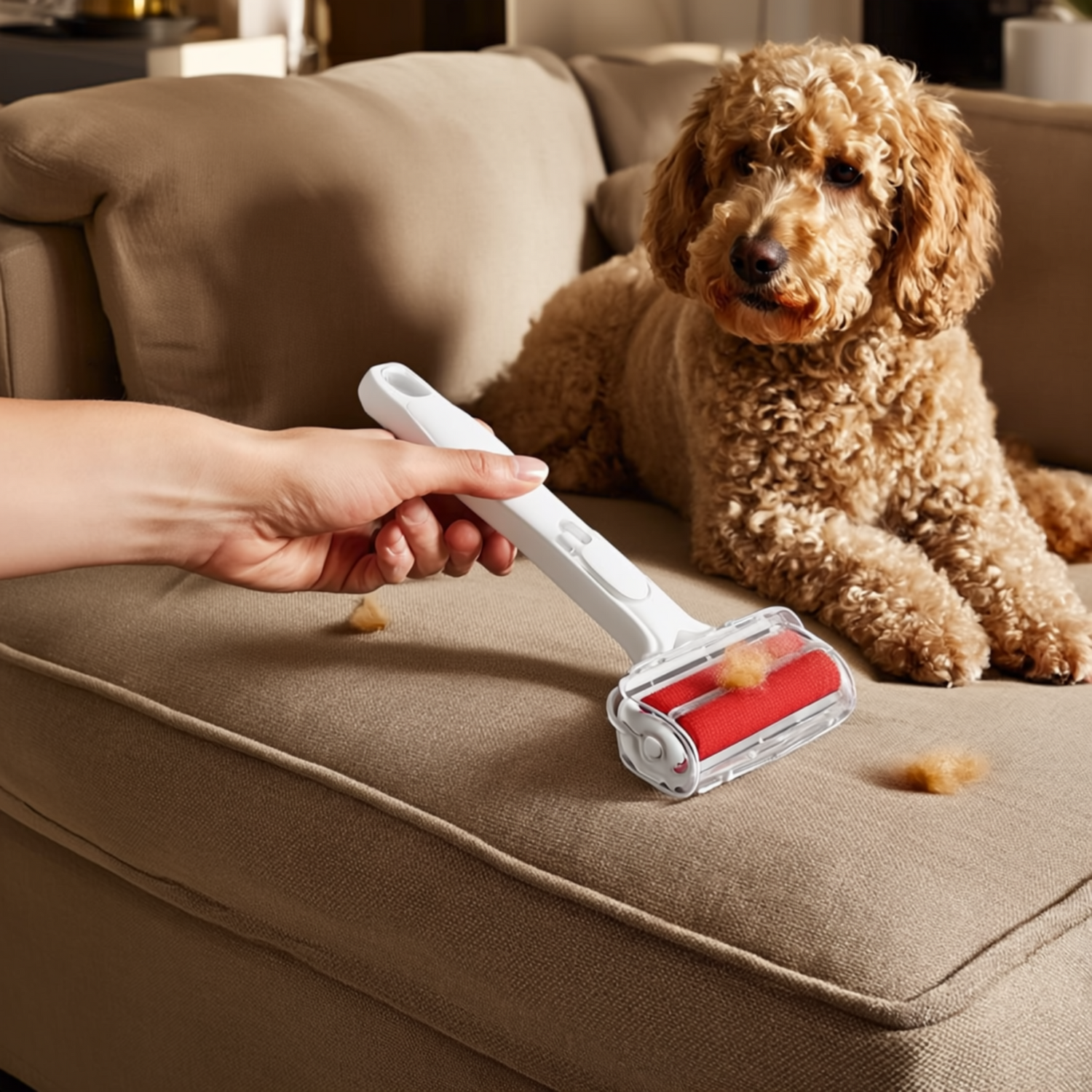 Keep your home fresh and fur-free in seconds. Our reusable Pet Hair Remover Roller lifts stubborn pet hair from sofas, bedding, carpets, and car seats — without sticky tape or refills. Just roll, empty, and reuse. Quick, simple, eco-friendly.